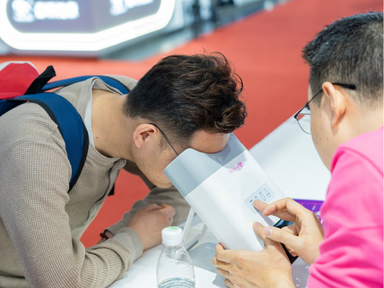 隔壁鹰瞳科技的展区更像一个“未来医务室”。只需30秒拍摄眼底照片,AI检测仪就能揪出心梗、糖尿病甚至阿尔茨海默症的早期信号;此外,鹰瞳科技还将展示其在视力康复、心理健康调节等领域的创新产品,如PBM视力康复仪、GABARx减压耳机等,帮助人们在快节奏的现代生活中,轻松应对各种健康挑战。